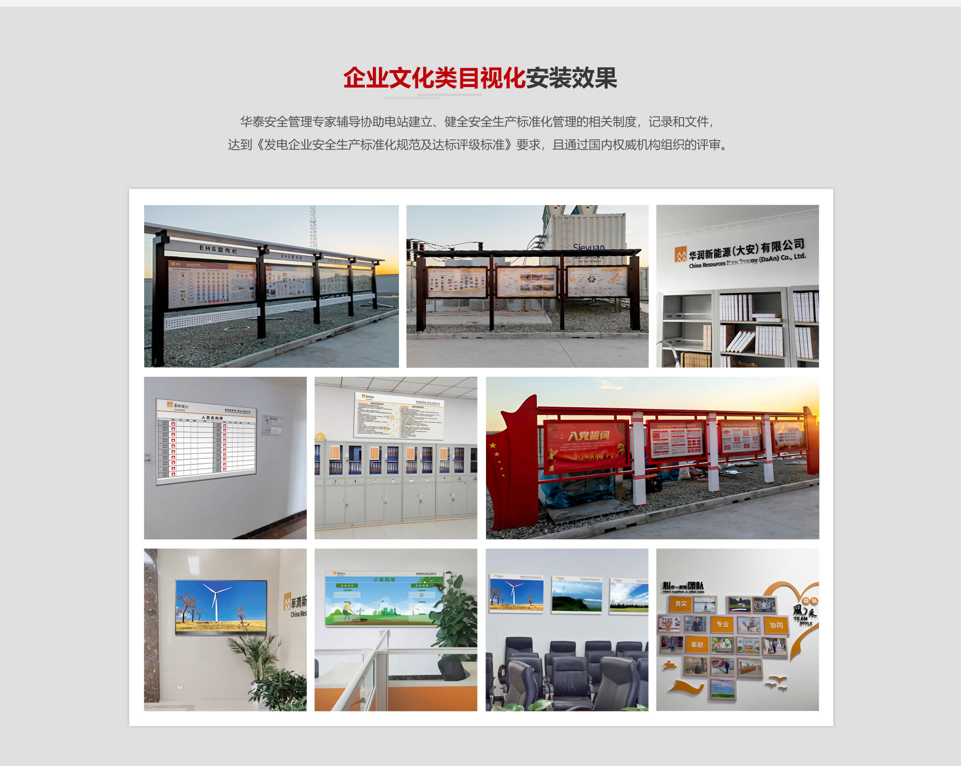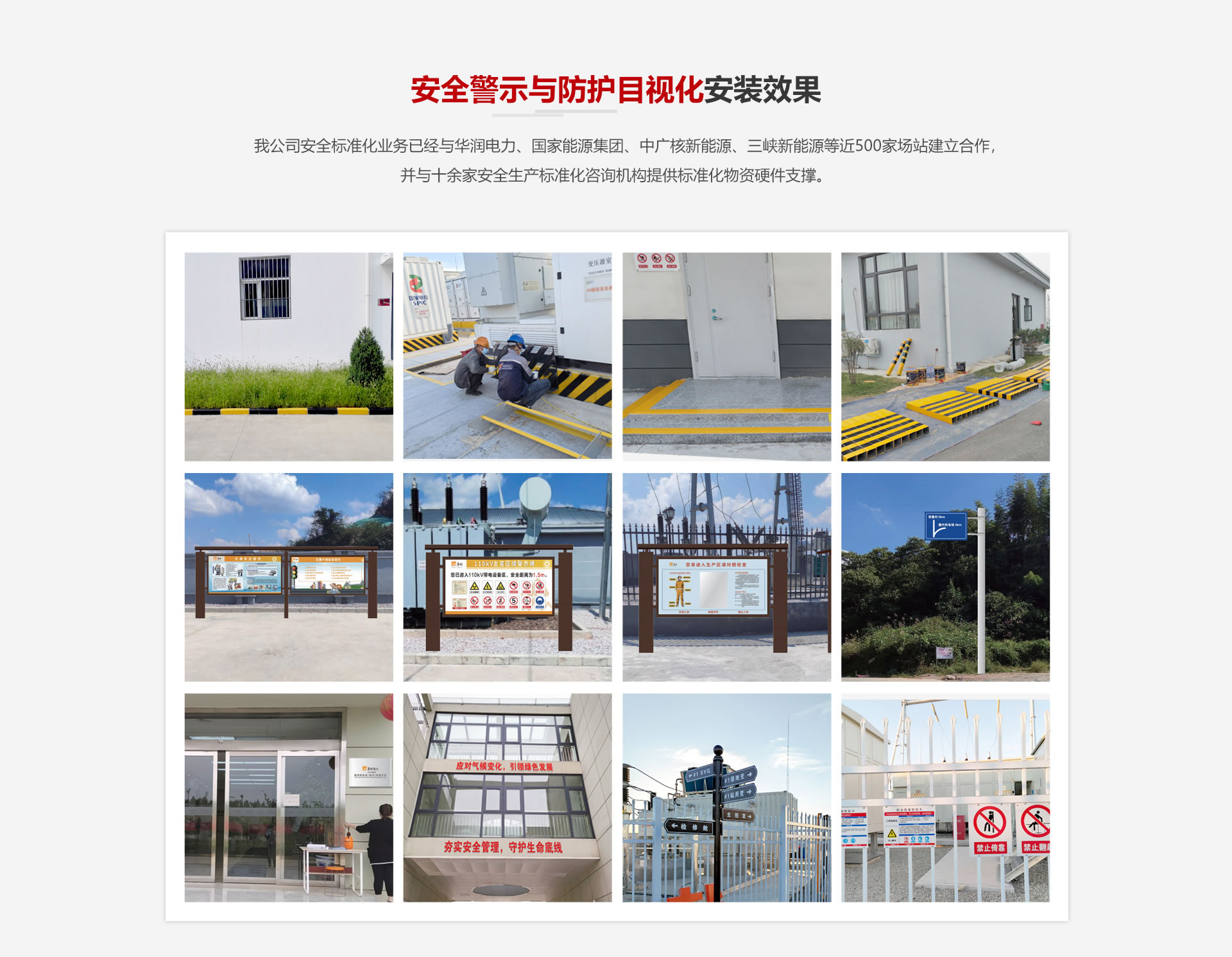 我公司安全標(biāo)準(zhǔn)化業(yè)務(wù)已經(jīng)與國家能源集團(tuán)、中廣核新能源、三峽新能源等近500家場站建立合作,并與十余家安全生產(chǎn)標(biāo)準(zhǔn)化咨詢機(jī)構(gòu)提供標(biāo)準(zhǔn)化物資硬件支撐。