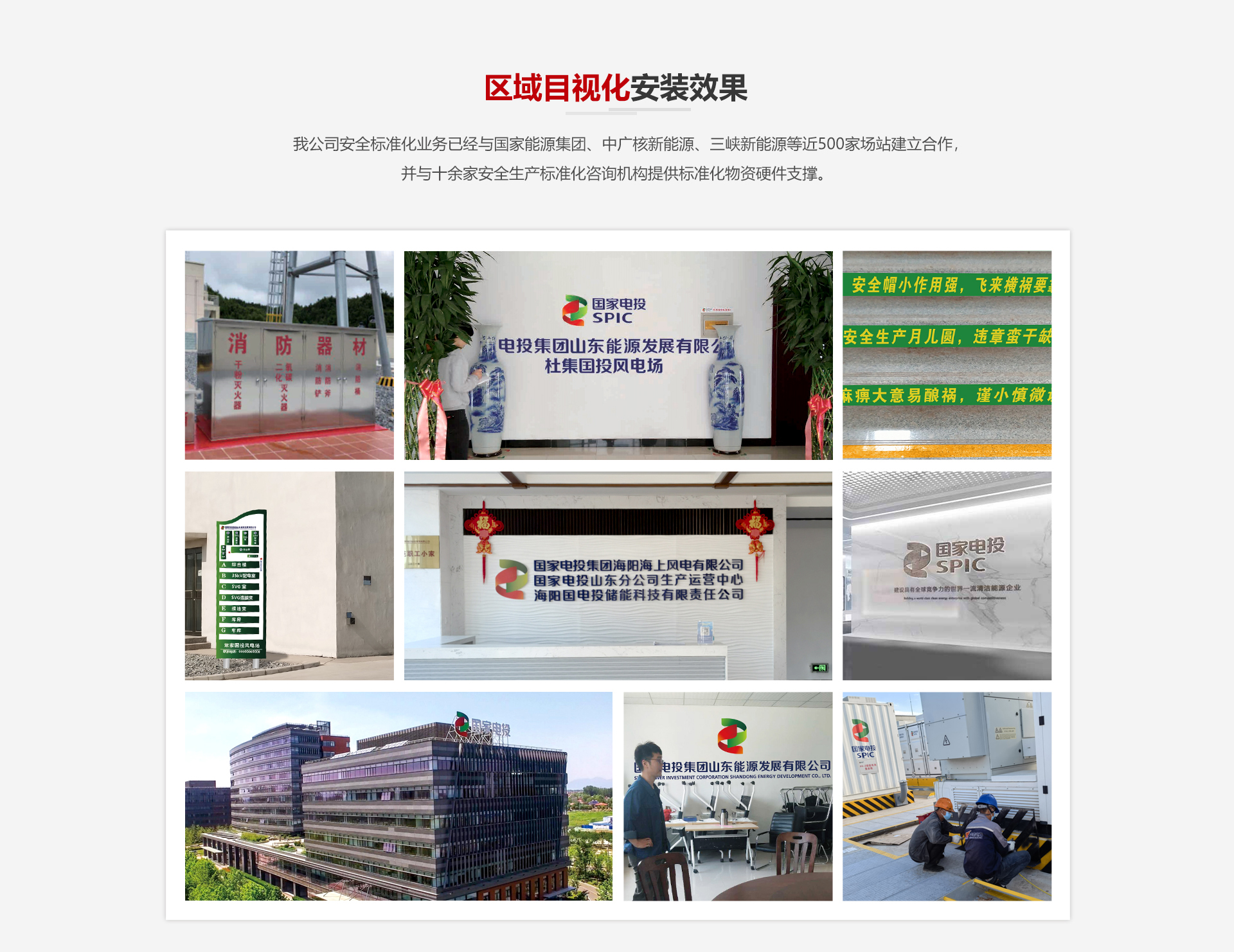我公司安全標(biāo)準(zhǔn)化業(yè)務(wù)已經(jīng)與國(guó)家能源集團(tuán)、中廣核新能源、三峽新能源等近500家場(chǎng)站建立合作,并與十余家安全生產(chǎn)標(biāo)準(zhǔn)化咨詢機(jī)構(gòu)提供標(biāo)準(zhǔn)化物資硬件支撐。